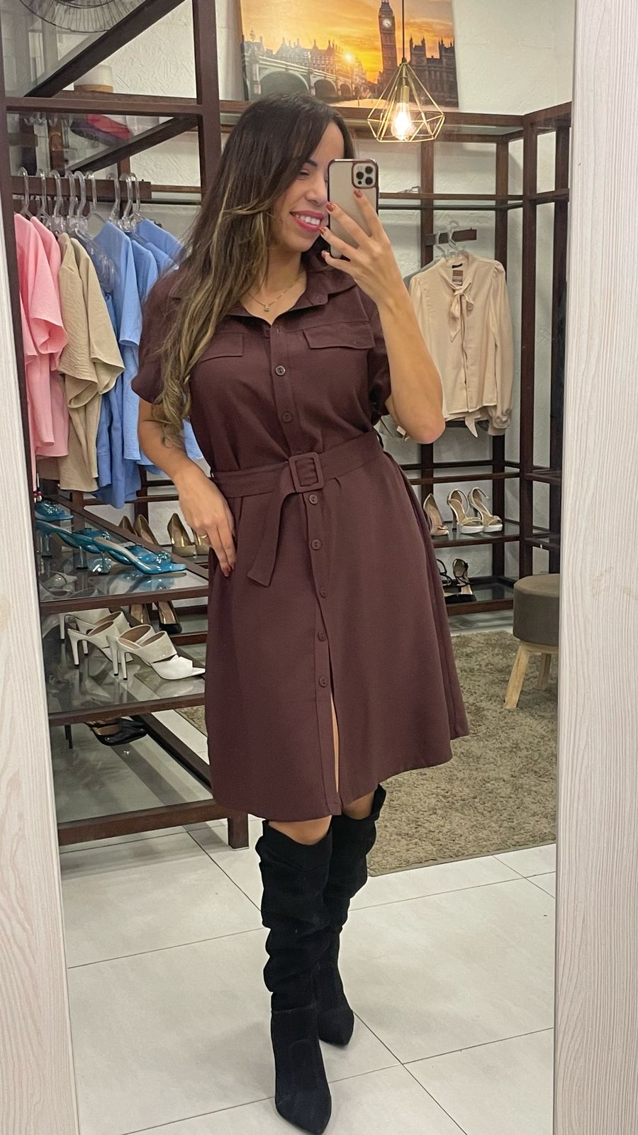 Vestido Alfaiataria com Colarinho e Botões na Frente, acompanha o cinto encapado.